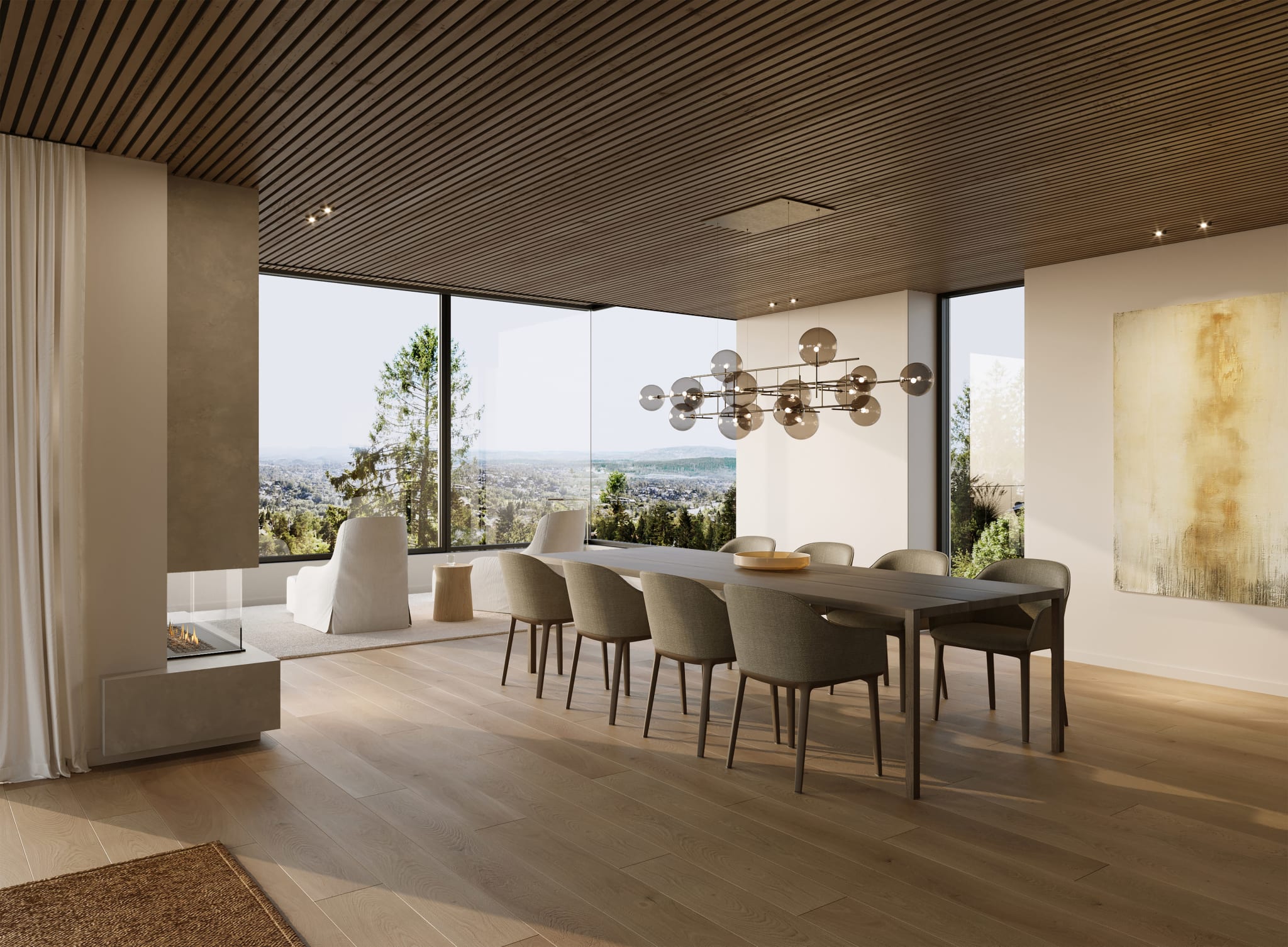 Setra vei består av 22 leiligheter fordelt på 5 bygg. Størrelsen varierer fra 105 til 250 kvm, og det visuelle inntrykket strekker seg fra vid panoramautsikt til skogsnær stemning.