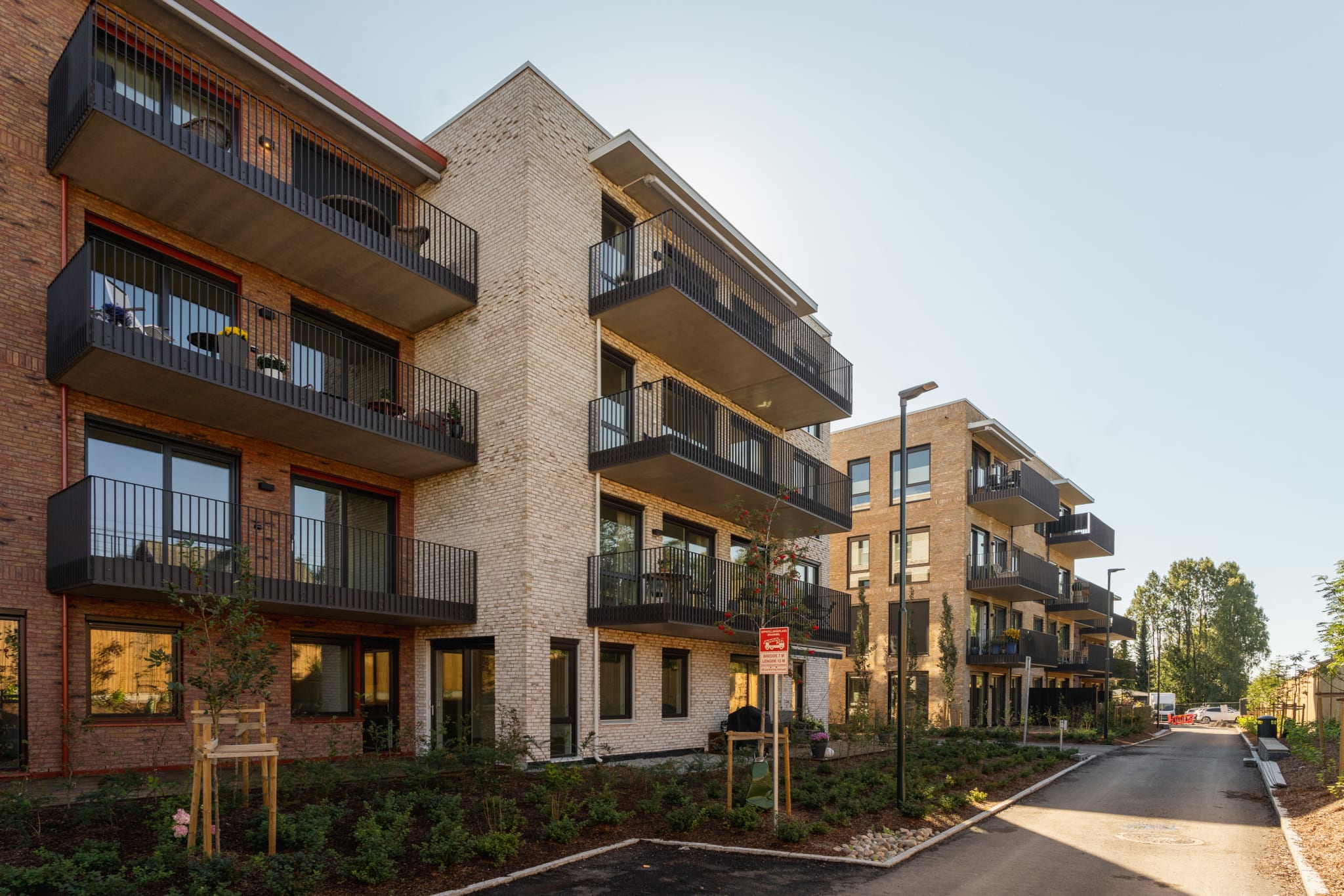 Området som tidligere bestod av 13 eneboliger omfatter nå 125 leiligheter med varierte størrelser fra 35 til 150 m² samt 2 gjesteleiligheter, som gir mulighet å nedskalere boligenes arealbehov. Alle leiligheter har privat uteplass via balkong, markterrasse eller takterrasse. Planløsningene er designet for å sikre fleksibilitet, gode siktlinjer og optimal utnyttelse av dagslys. Hoveddelen av boligene er gjennomgående med lysinnfall fra minst to sider, noe som gir en lys og luftig atmosfære.