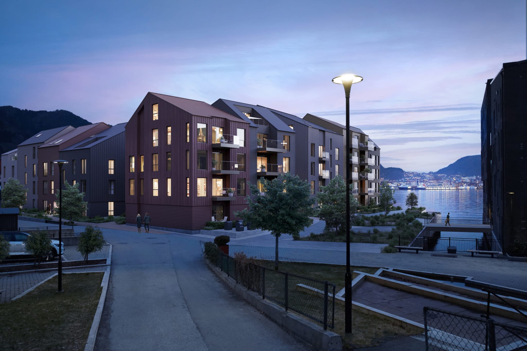 Her skal Gjelsten Bolig AS bygge 77 leiligheter helt ned i sjøkanten, et steinkast fra Gamle Bergen. Det er det første prosjektet med salgsstart etter sammenslåingen av Neptune og Profier til Gjelsten Bolig 1. mars i år.