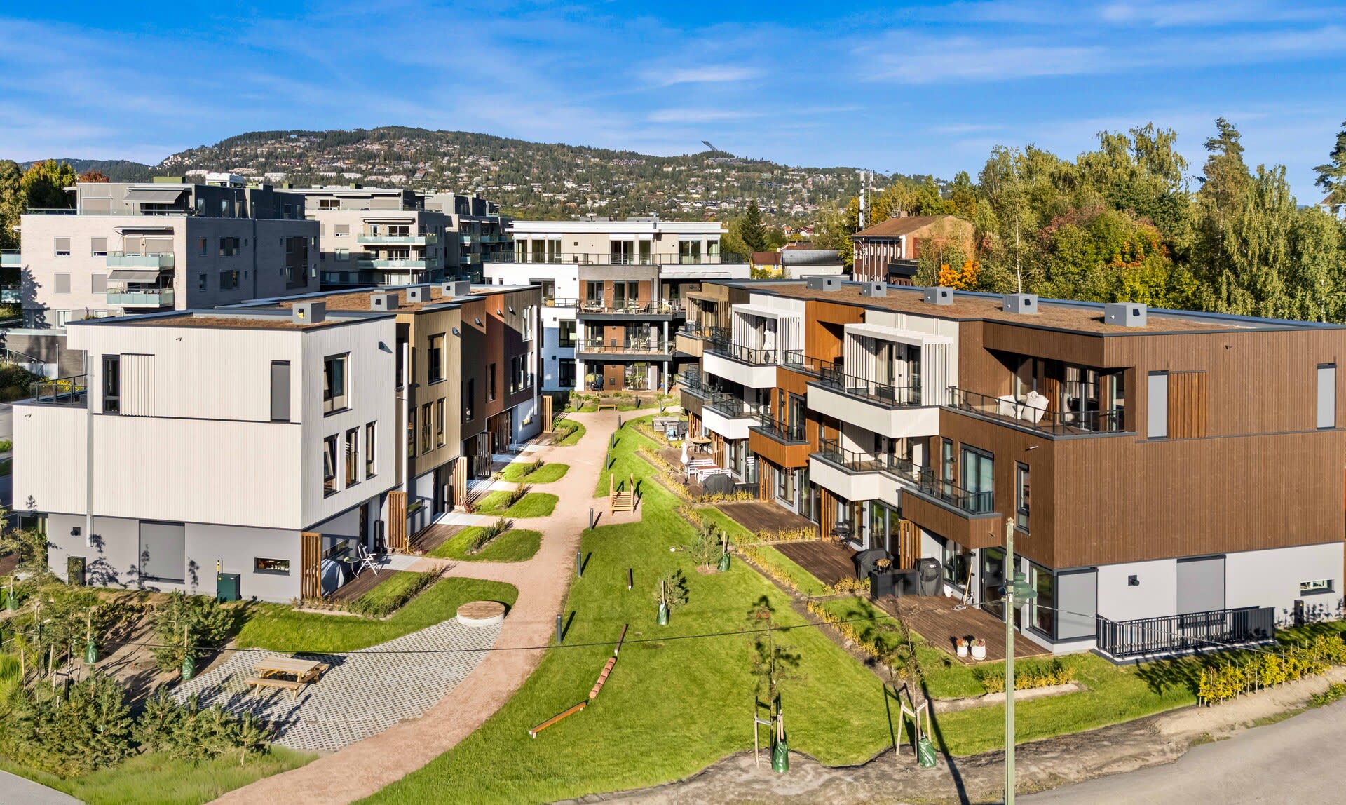 Bekkegrenda har en attraktiv beliggenhet med kort vei til T-bane, servicetilbud og flotte turområder, og gir en fin balanse mellom det urbane og det grønne.