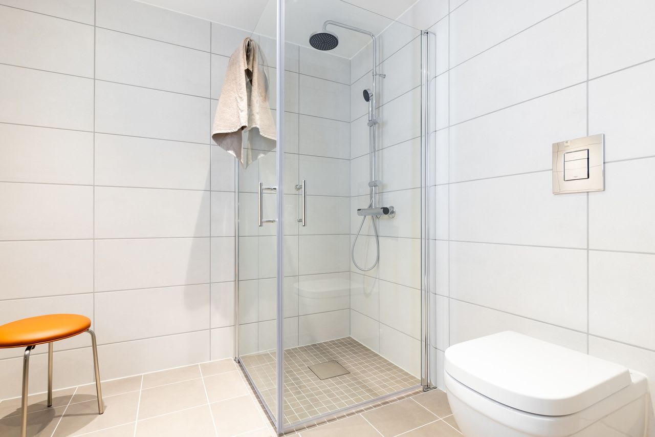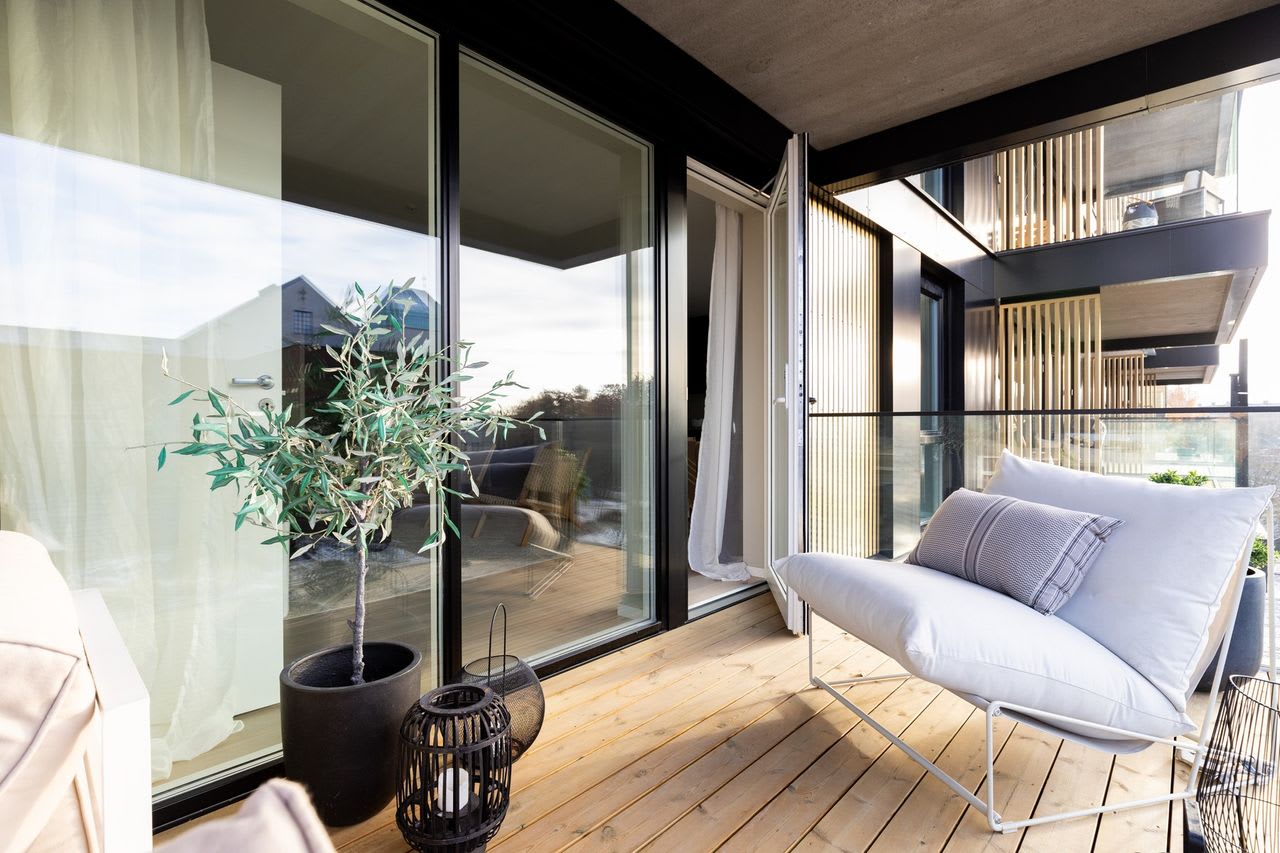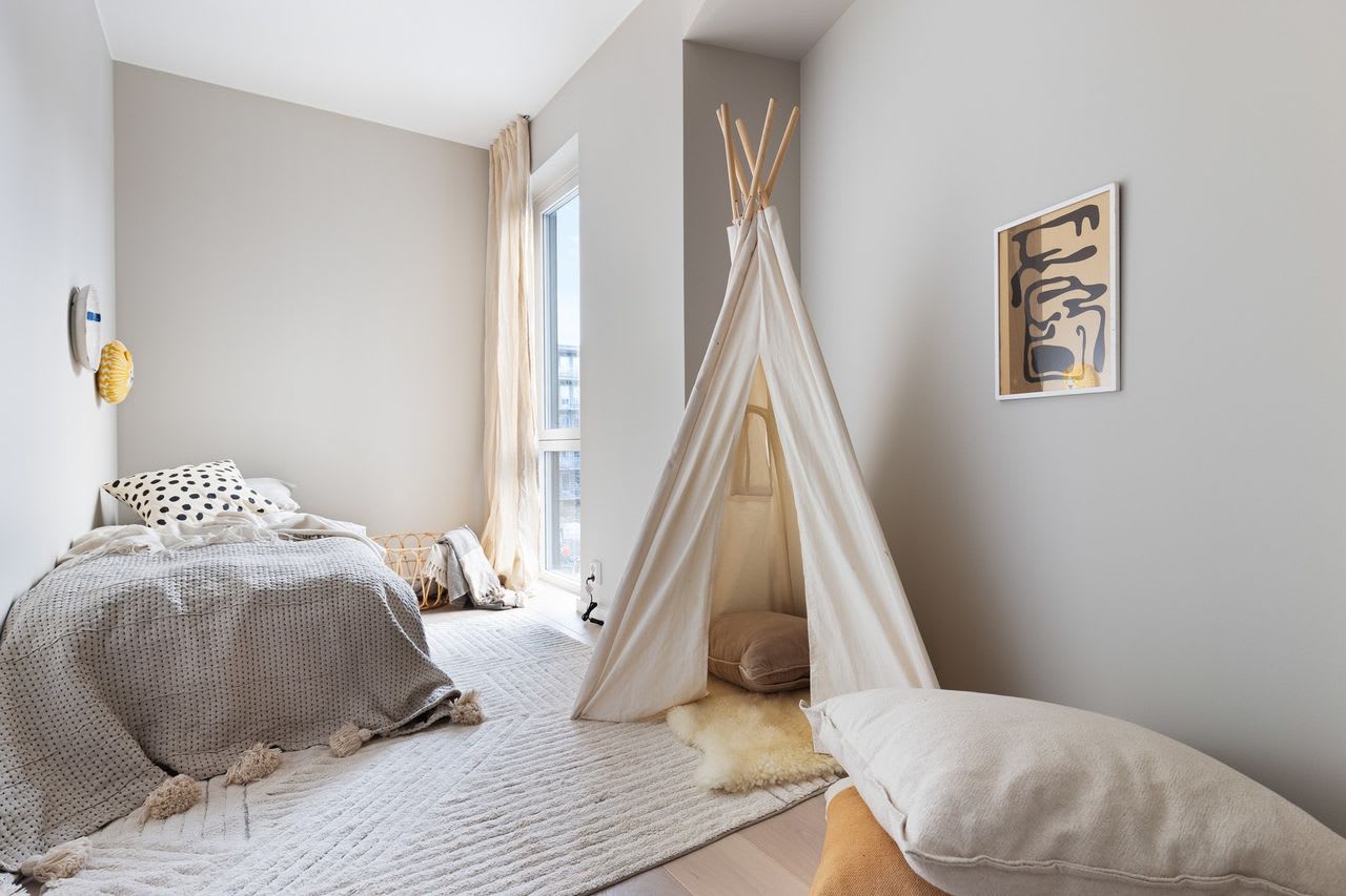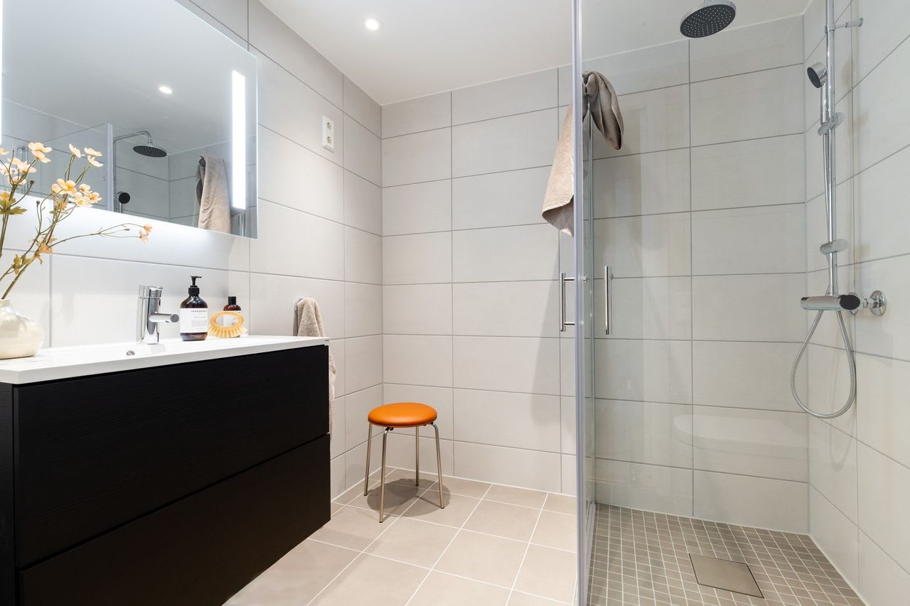 Hovedsoverom med en-suite bad og avsatt plass til garderobeløsning. Stue og kjøkken blir et sosialt rom på hele 44 kvm, med store vindusflater, fine møbleringssoner og utgang til sydvestvendt balkong. Romslig entré og gang i leiligheten, og 1 sportsbod på 5 kvm i underetasjen.