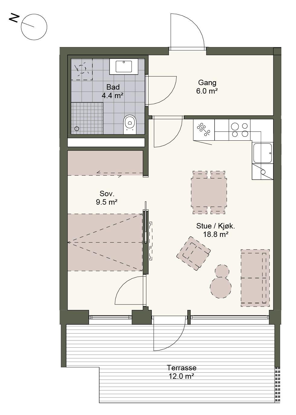 Visualiseringer og boligvelger på prosjektsiden dokumenterer ikke spesifikke kvaliteter eller egenskaper ved eiendommen og er ikke en del av kontrakten eller prospektet. Avvik mellom det planlagte prosjektet og den endelige eiendommen kan forekomme, inkludert, men ikke begrenset til topografi, utsikt, solforhold, farger, interiørdesign og fasade.