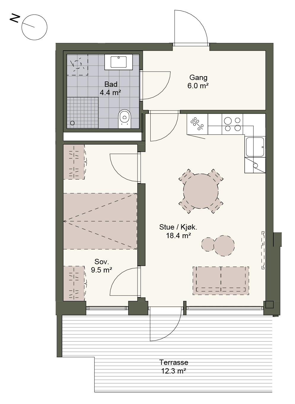 Visualiseringer og boligvelger på prosjektsiden dokumenterer ikke spesifikke kvaliteter eller egenskaper ved eiendommen og er ikke en del av kontrakten eller prospektet. Avvik mellom det planlagte prosjektet og den endelige eiendommen kan forekomme, inkludert, men ikke begrenset til topografi, utsikt, solforhold, farger, interiørdesign og fasade.
