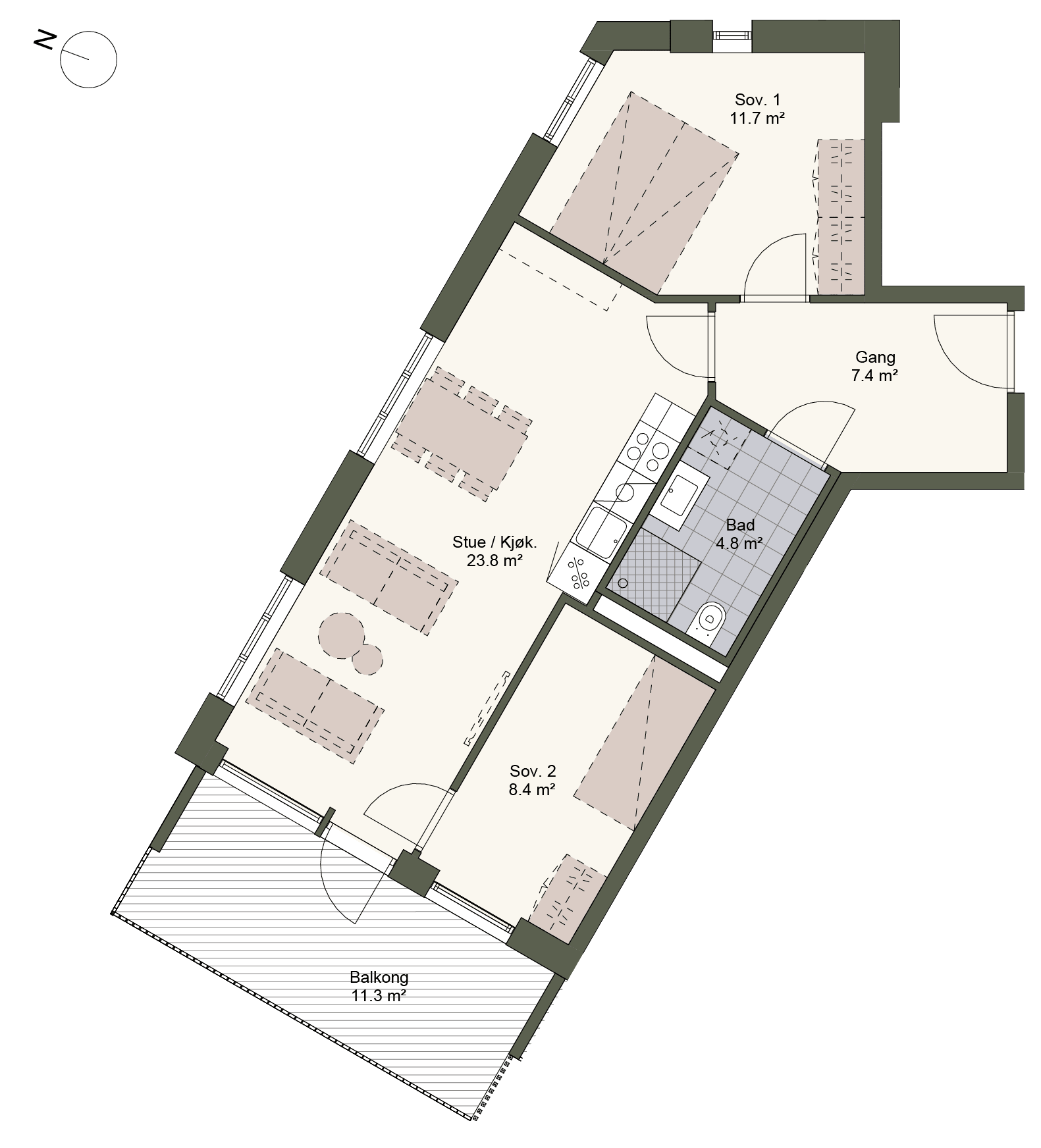 Visualiseringer og boligvelger på prosjektsiden dokumenterer ikke spesifikke kvaliteter eller egenskaper ved eiendommen og er ikke en del av kontrakten eller prospektet. Avvik mellom det planlagte prosjektet og den endelige eiendommen kan forekomme, inkludert, men ikke begrenset til topografi, utsikt, solforhold, farger, interiørdesign og fasade.