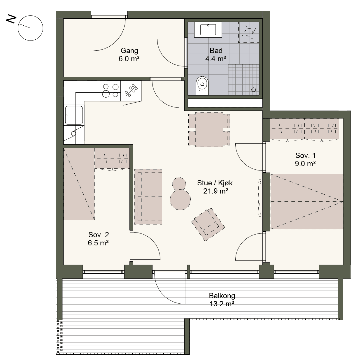 Visualiseringer og boligvelger på prosjektsiden dokumenterer ikke spesifikke kvaliteter eller egenskaper ved eiendommen og er ikke en del av kontrakten eller prospektet. Avvik mellom det planlagte prosjektet og den endelige eiendommen kan forekomme, inkludert, men ikke begrenset til topografi, utsikt, solforhold, farger, interiørdesign og fasade.