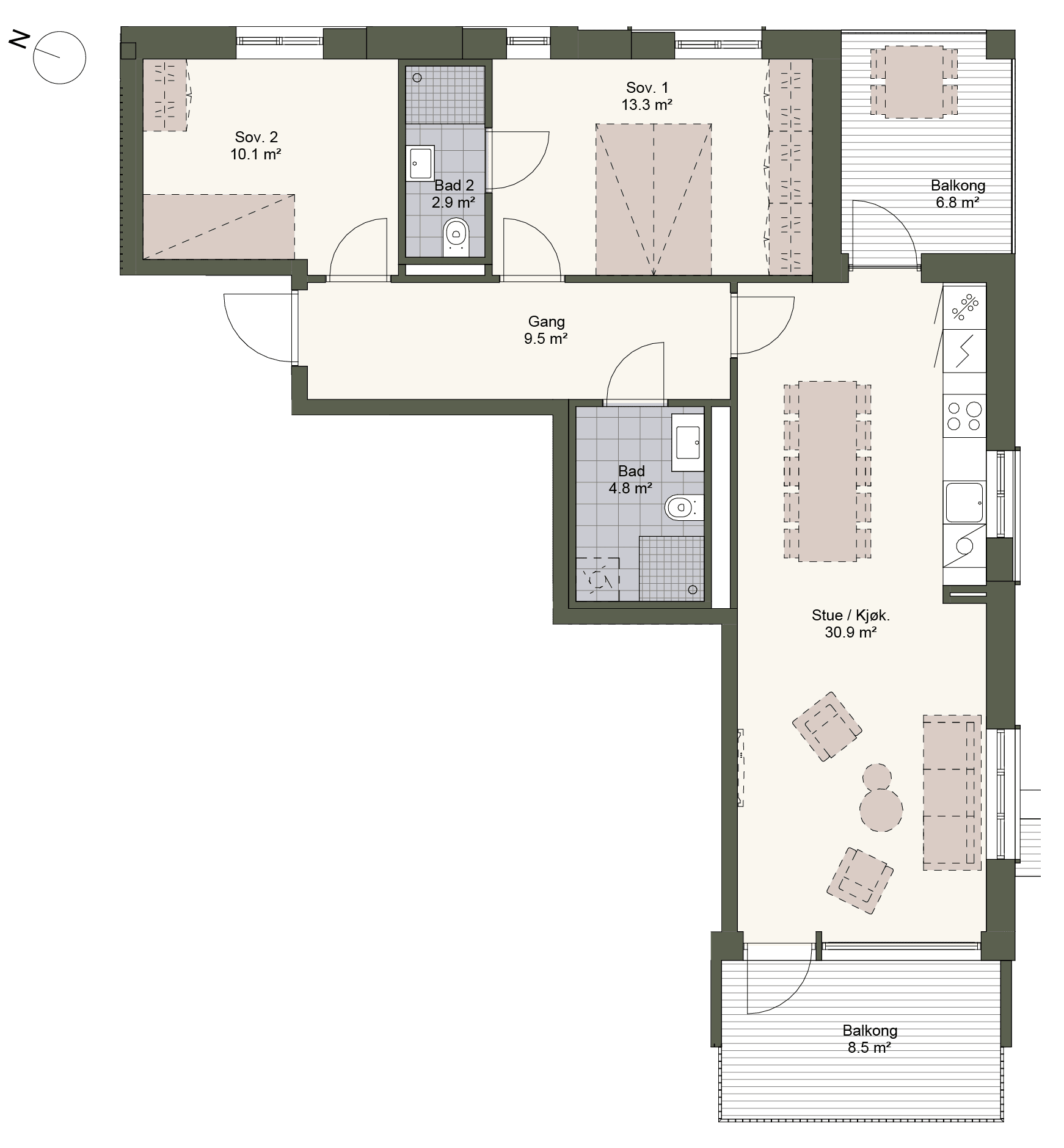 Visualiseringer og boligvelger på prosjektsiden dokumenterer ikke spesifikke kvaliteter eller egenskaper ved eiendommen og er ikke en del av kontrakten eller prospektet. Avvik mellom det planlagte prosjektet og den endelige eiendommen kan forekomme, inkludert, men ikke begrenset til topografi, utsikt, solforhold, farger, interiørdesign og fasade.
