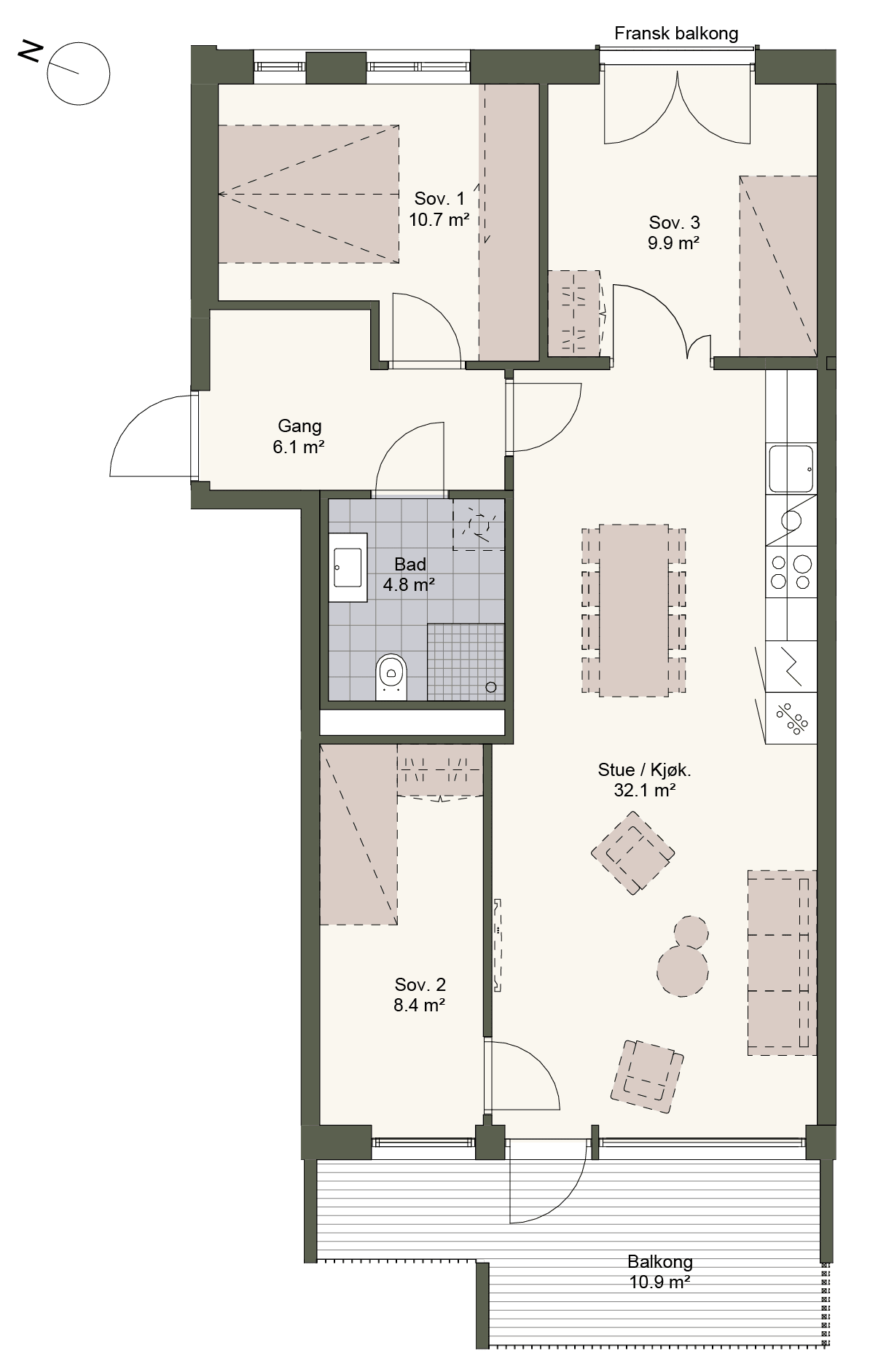 Visualiseringer og boligvelger på prosjektsiden dokumenterer ikke spesifikke kvaliteter eller egenskaper ved eiendommen og er ikke en del av kontrakten eller prospektet. Avvik mellom det planlagte prosjektet og den endelige eiendommen kan forekomme, inkludert, men ikke begrenset til topografi, utsikt, solforhold, farger, interiørdesign og fasade.