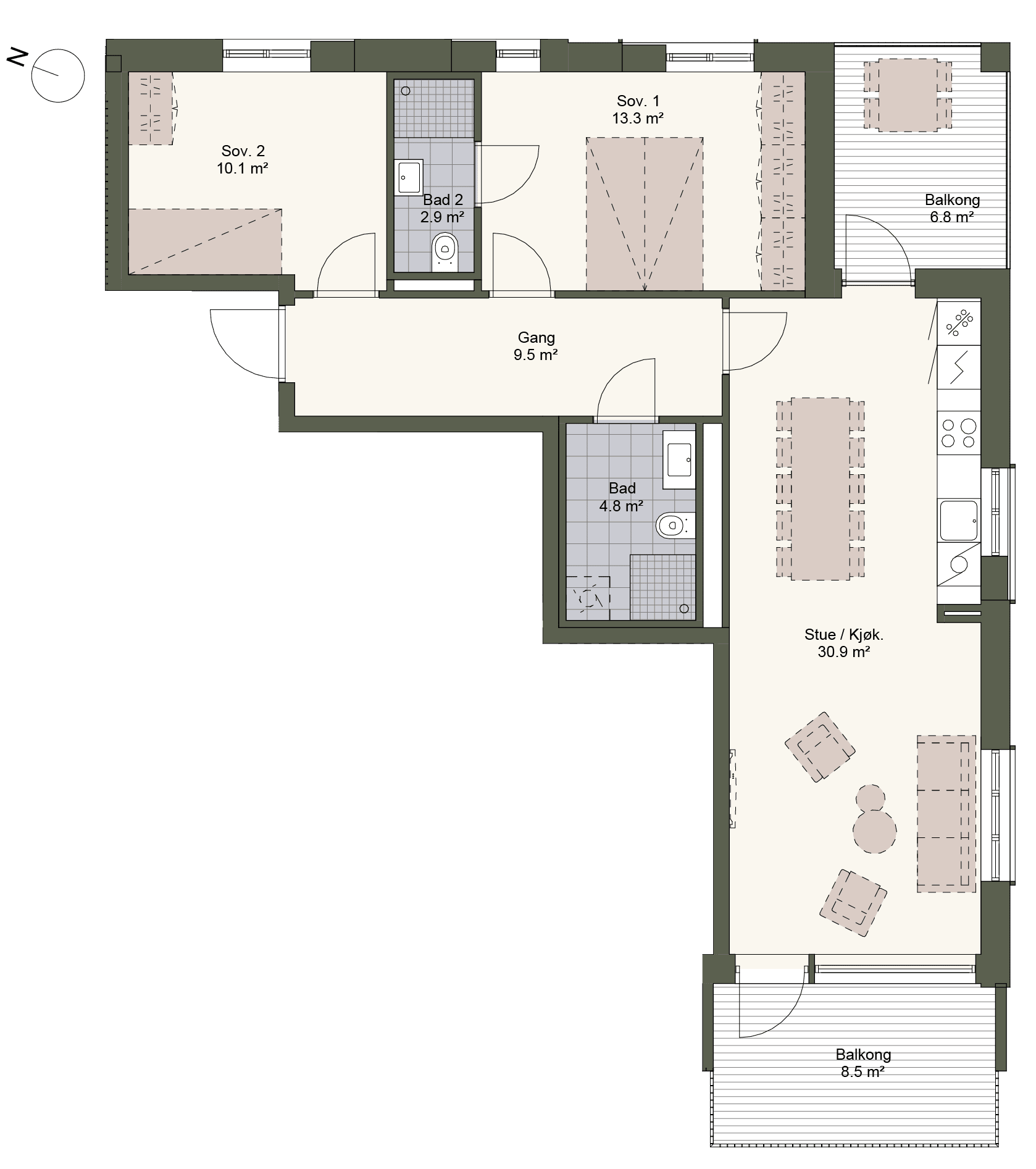 Visualiseringer og boligvelger på prosjektsiden dokumenterer ikke spesifikke kvaliteter eller egenskaper ved eiendommen og er ikke en del av kontrakten eller prospektet. Avvik mellom det planlagte prosjektet og den endelige eiendommen kan forekomme, inkludert, men ikke begrenset til topografi, utsikt, solforhold, farger, interiørdesign og fasade.