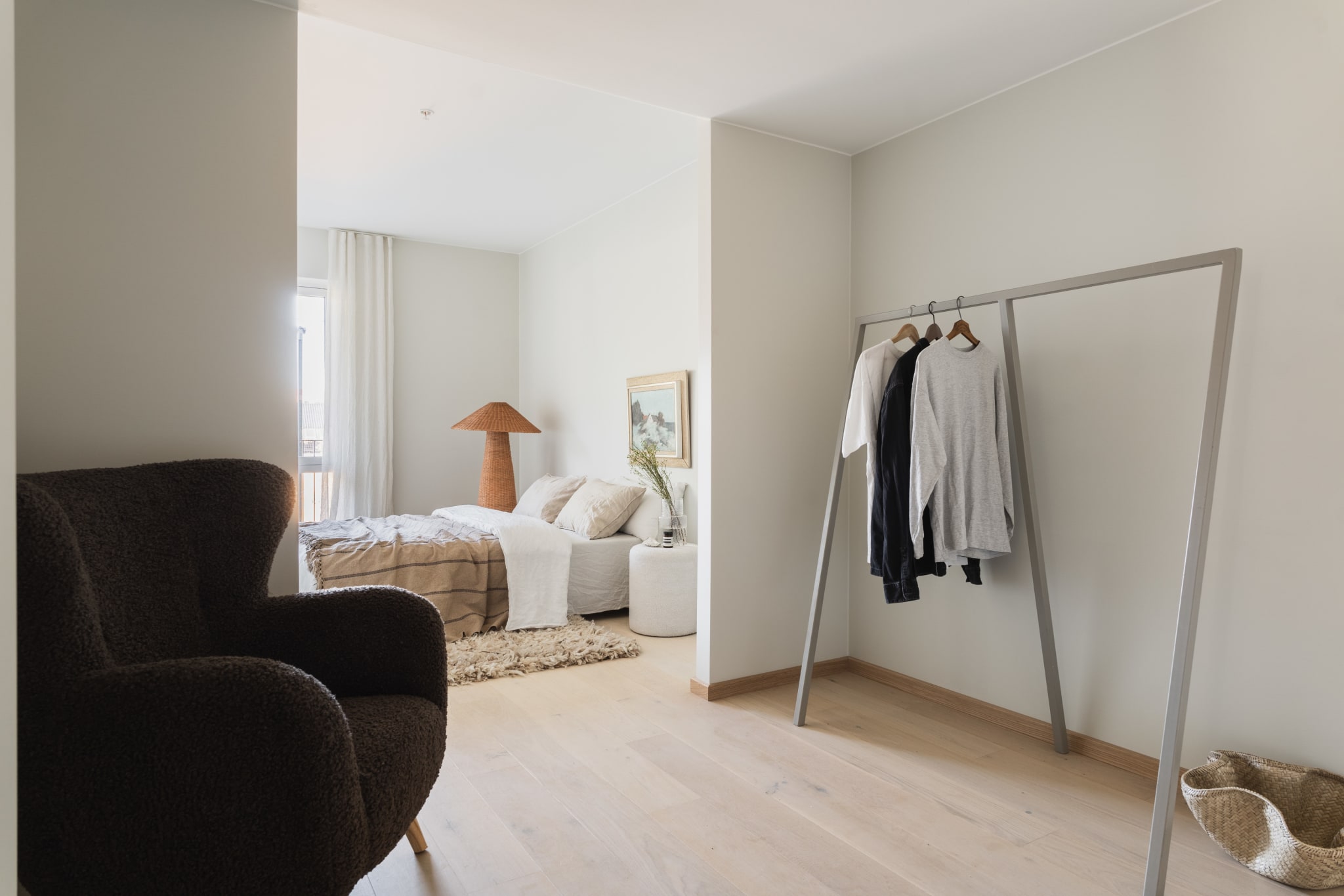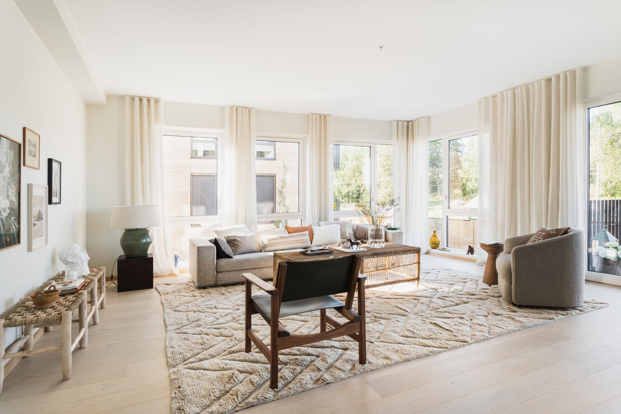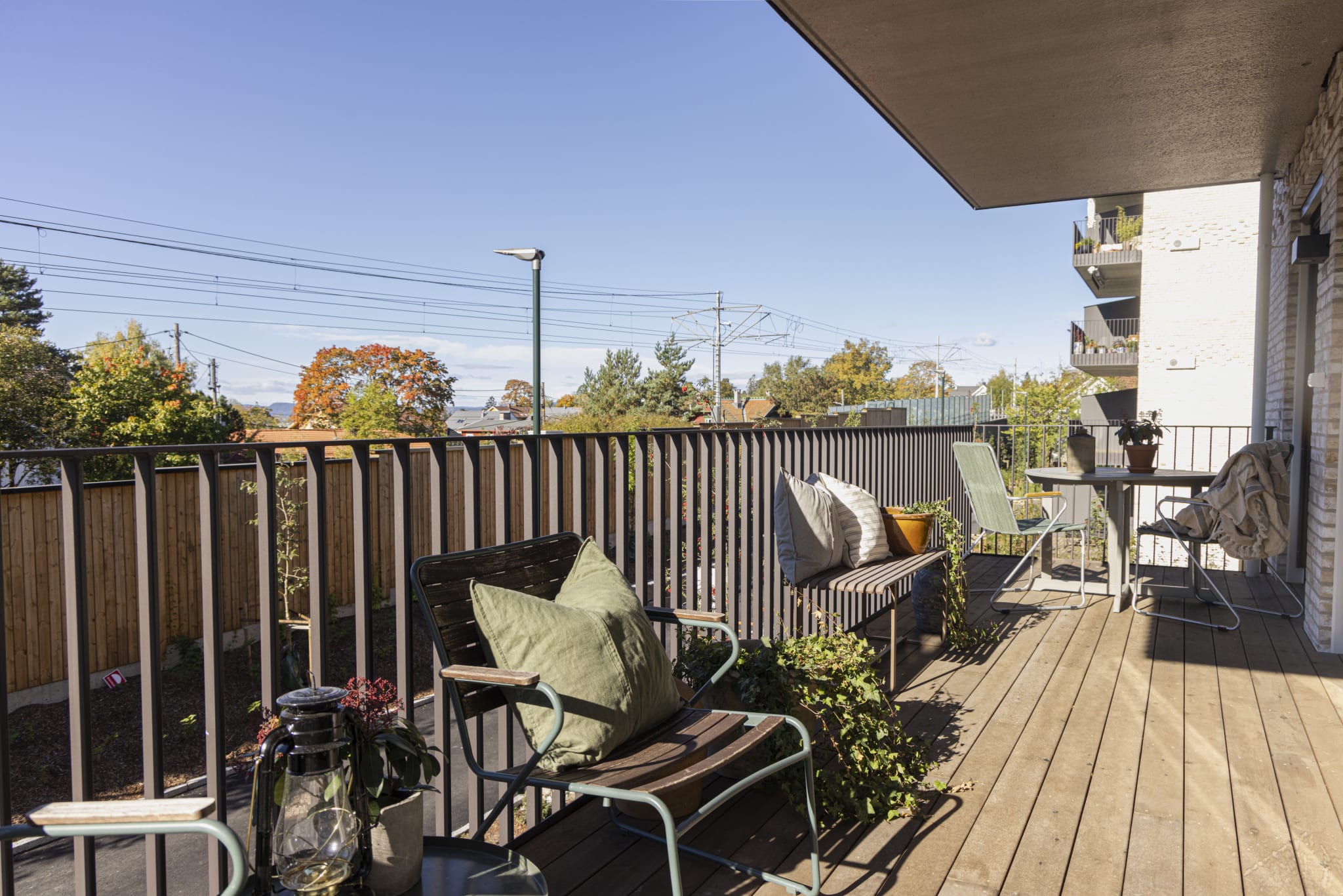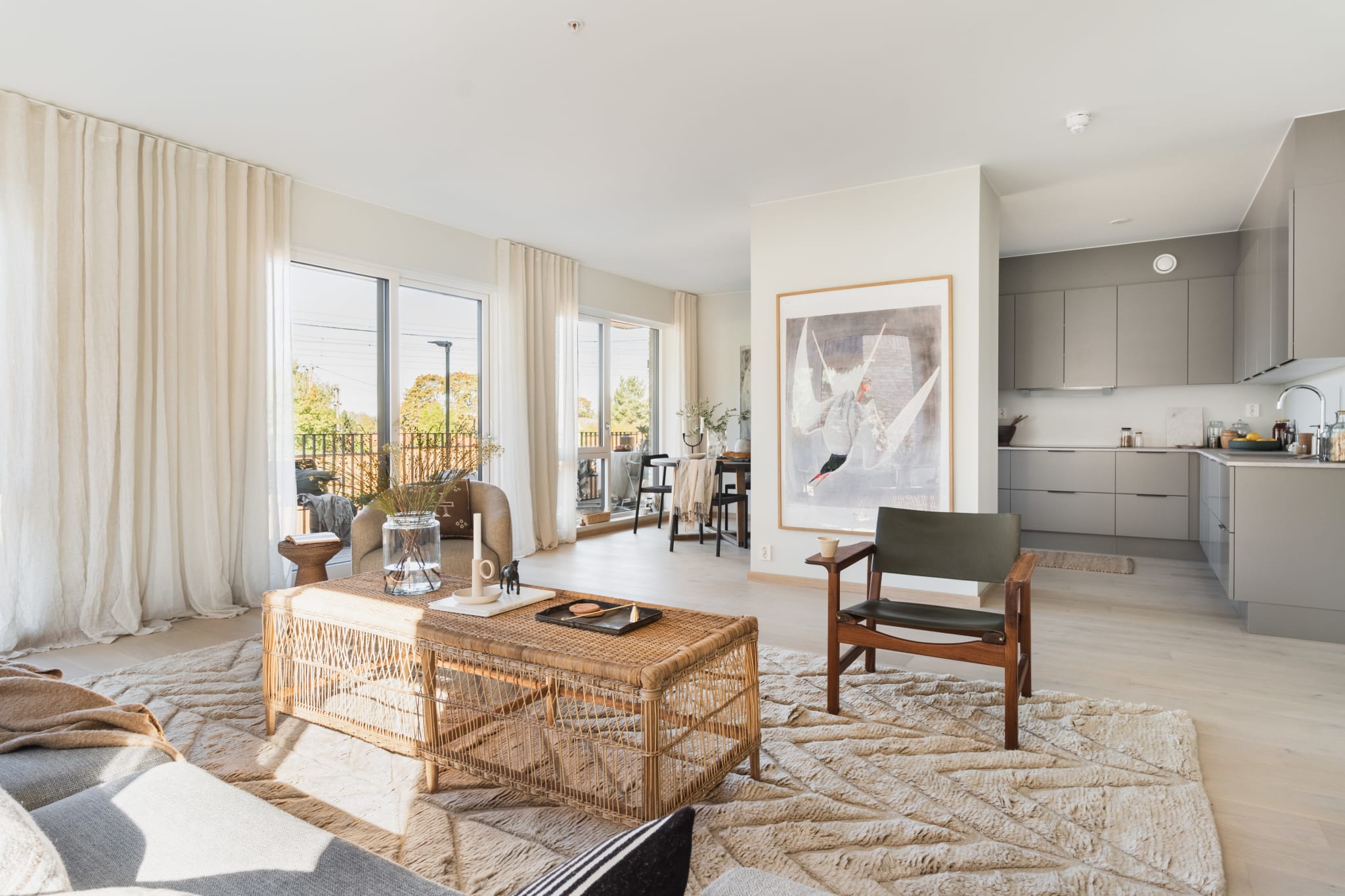 Eksklusiv 4-roms hjørneleilighet med 15,6 kvm stor vestvendt og solrik balkong. Hovedsoverom med en-suite bad og walk-in closet, skyvedørsgarderobe i entré, tre soverom, to bad og lekker åpen stue- og kjøkkenløsning med høy standard. Store vinduer sikrer rikelig med lysinnslipp, og screens på vinduer mot syd og vest bedrer inneklimaet.