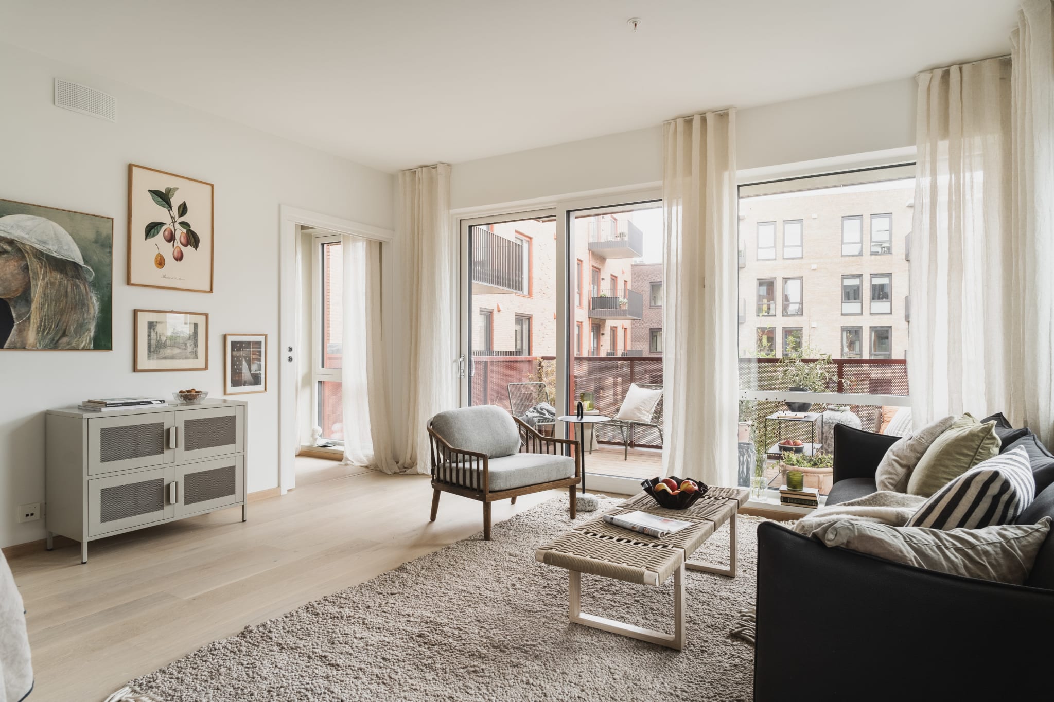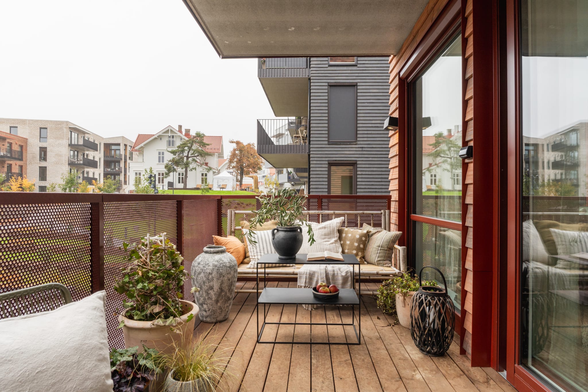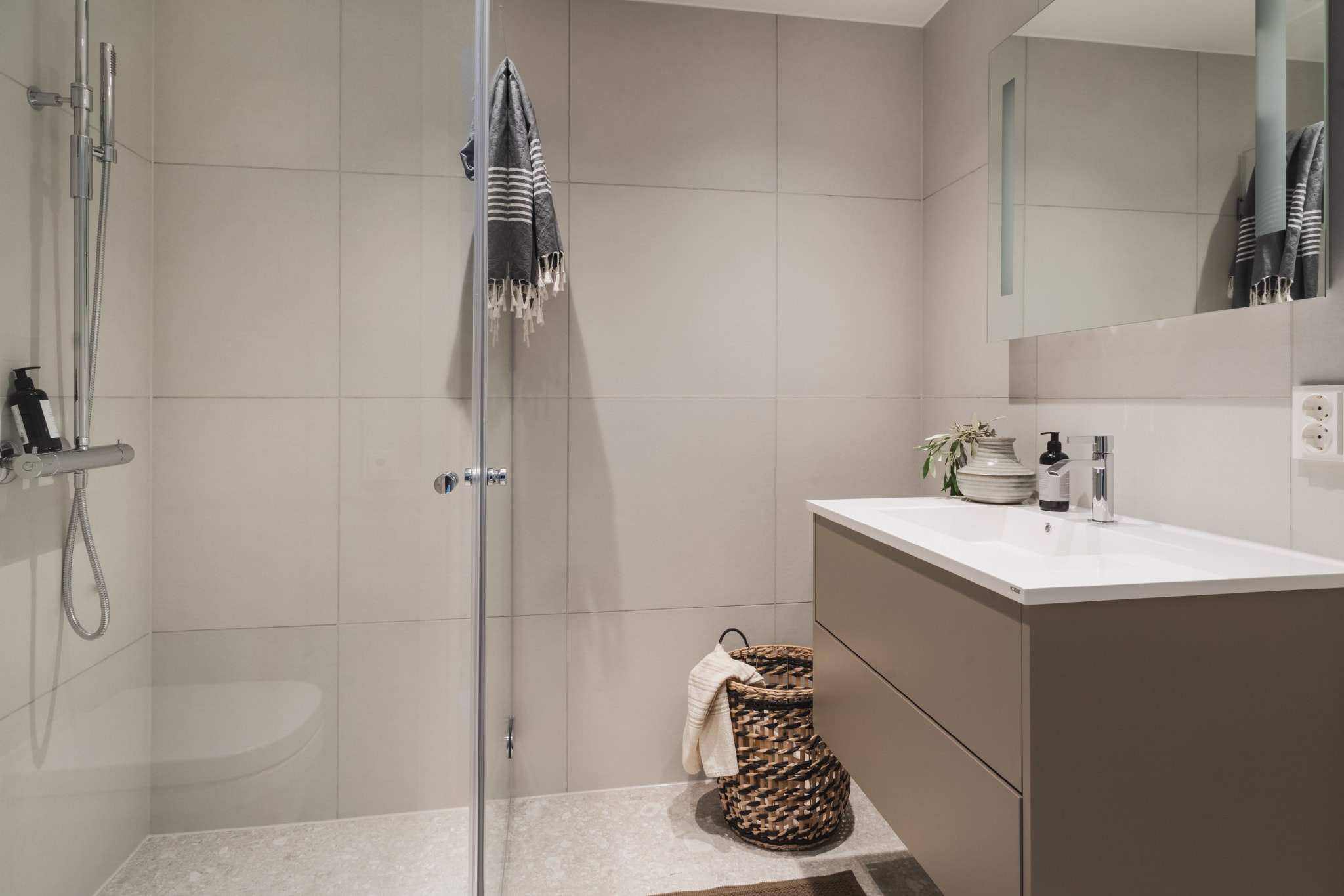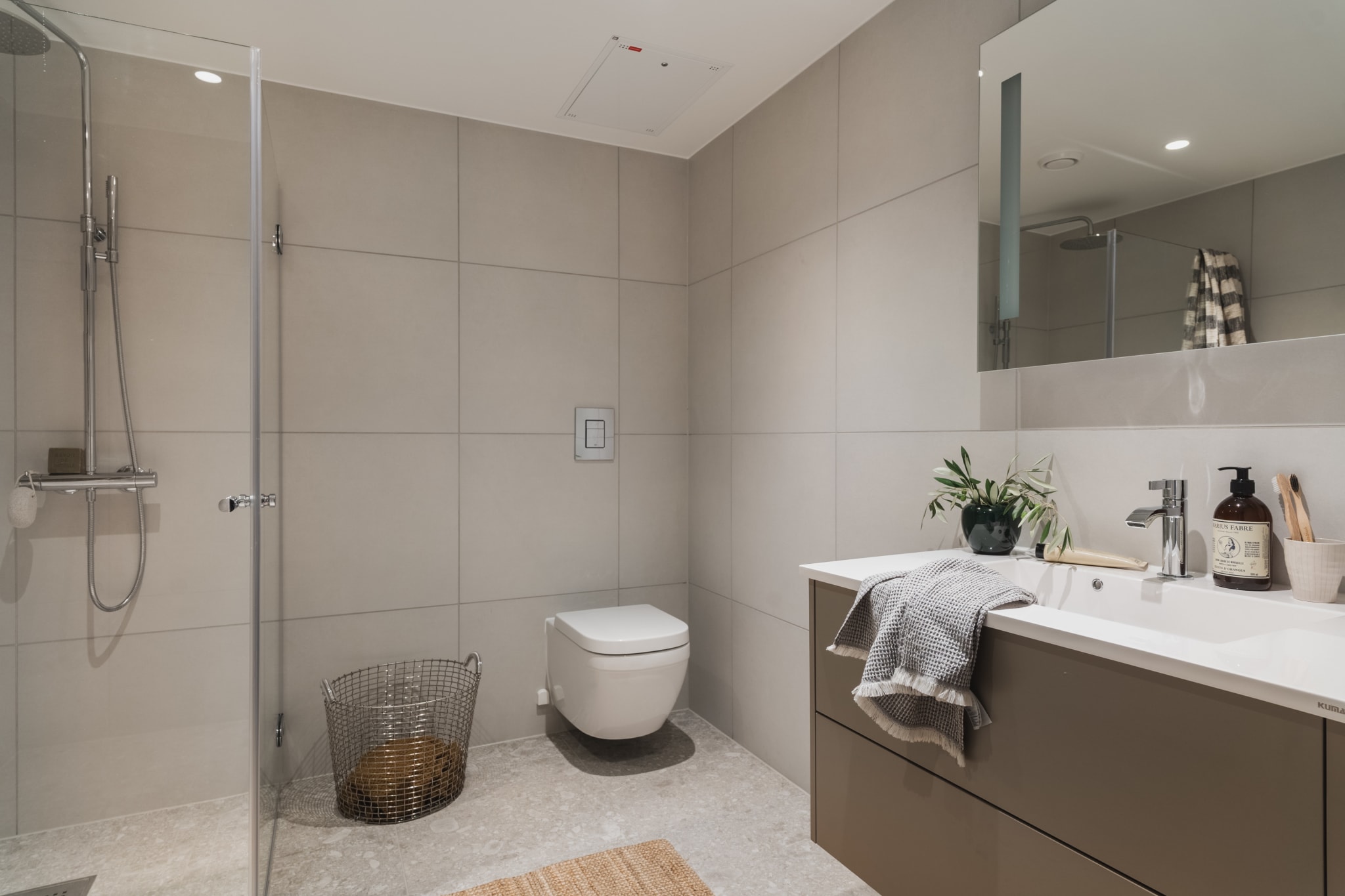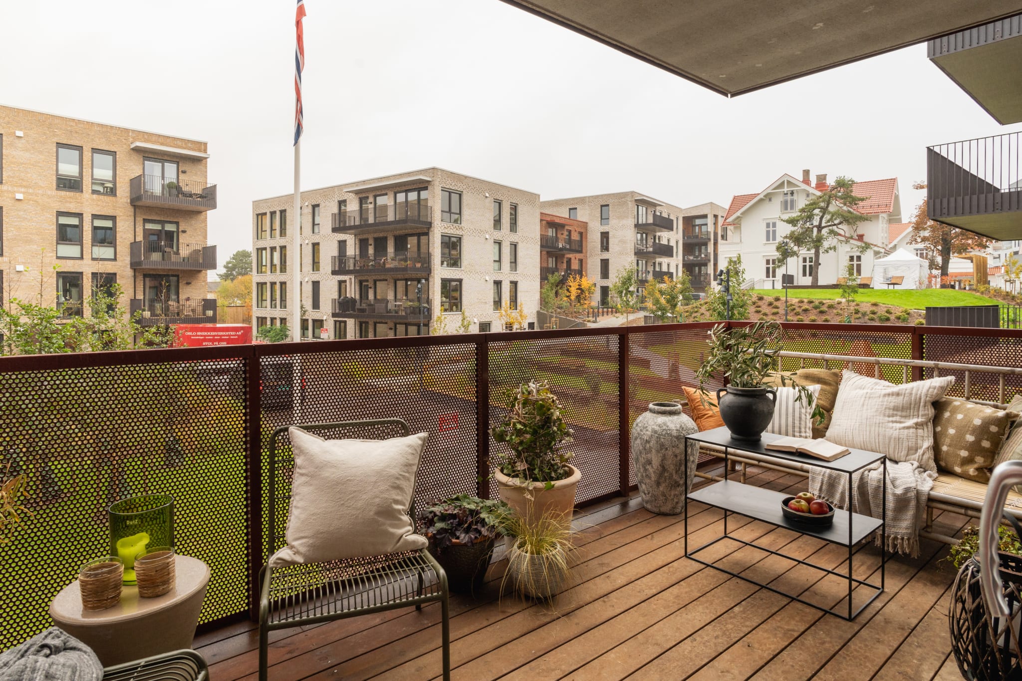 Stor 4-roms hjørne- og endeleilighet med solrik og vestvendt balkong på 9,3 kvm, tre soverom, to bad og innvendig bod. Leiligheten har hovedsoverom med en-suite bad og avsatt plass til garderobeskap i entré.