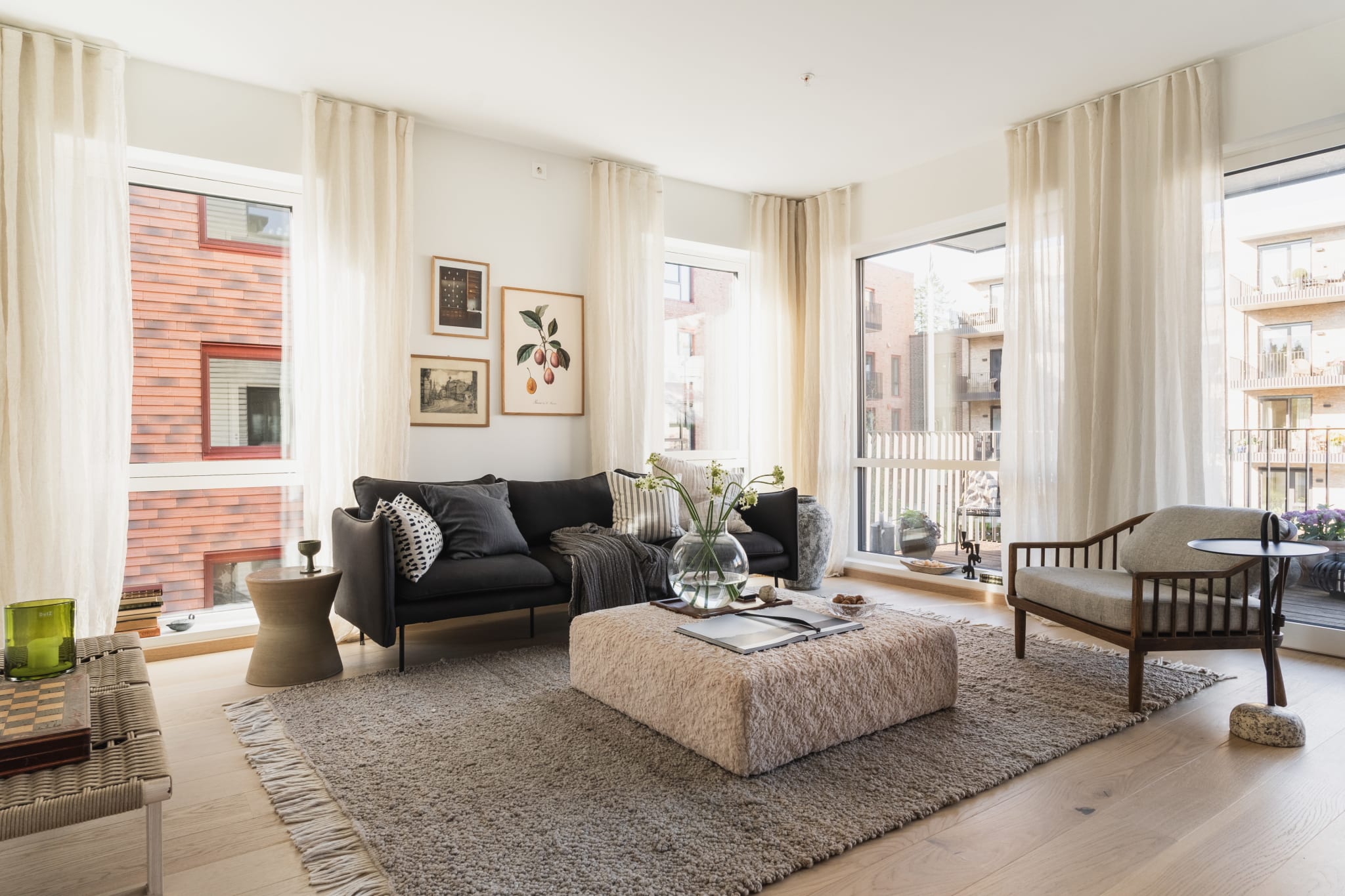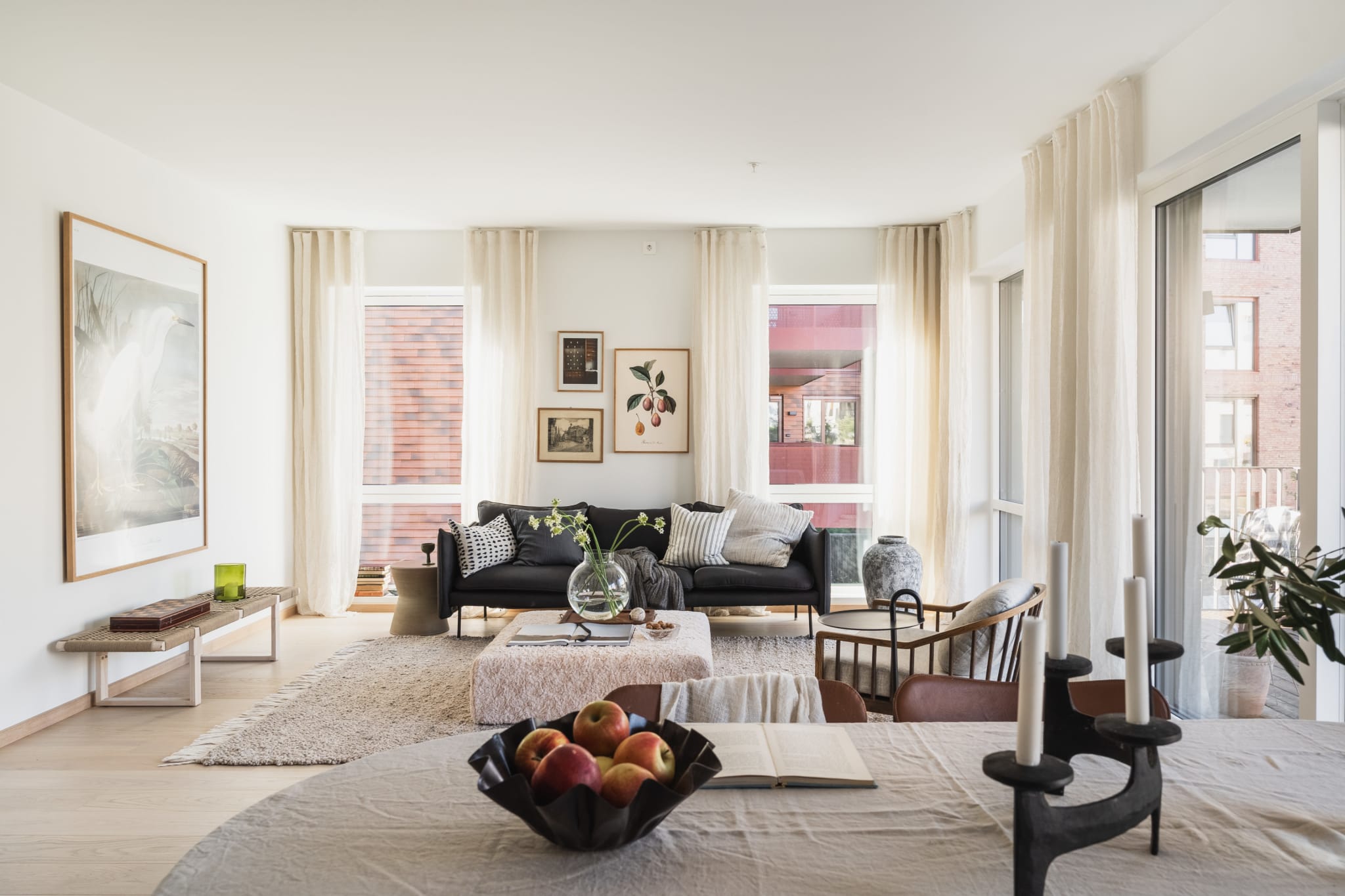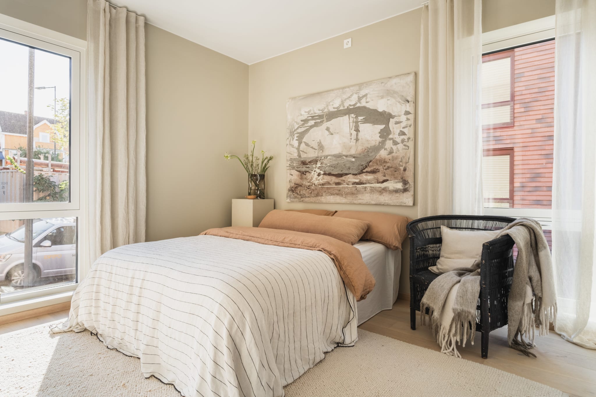 Flott 3-roms toppleilighet med stor balkong vendt mot frodig hageanlegg. Gode oppbevaringsmuligheter i romslig entré og høy standard.