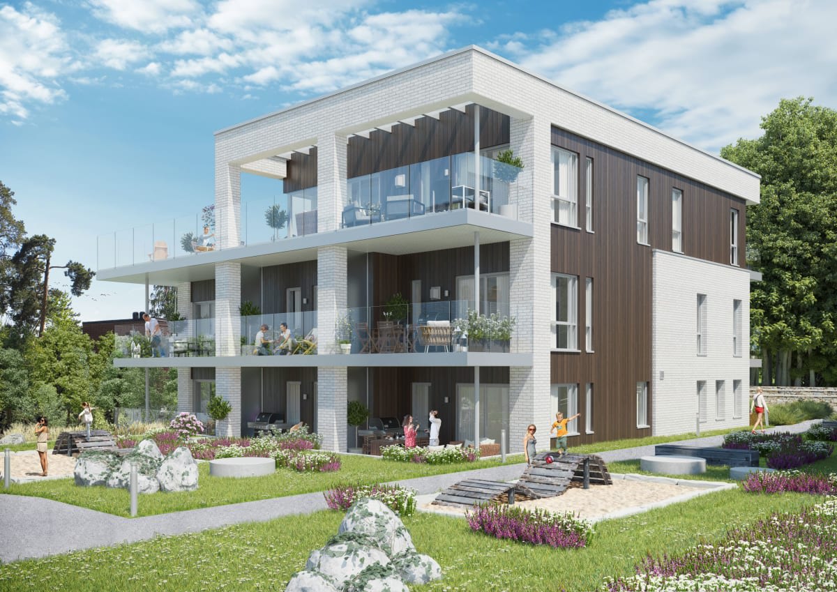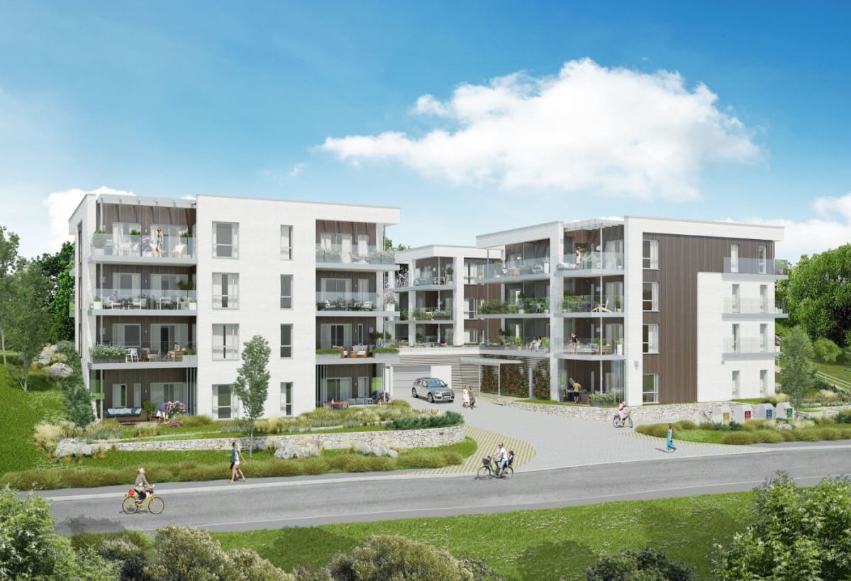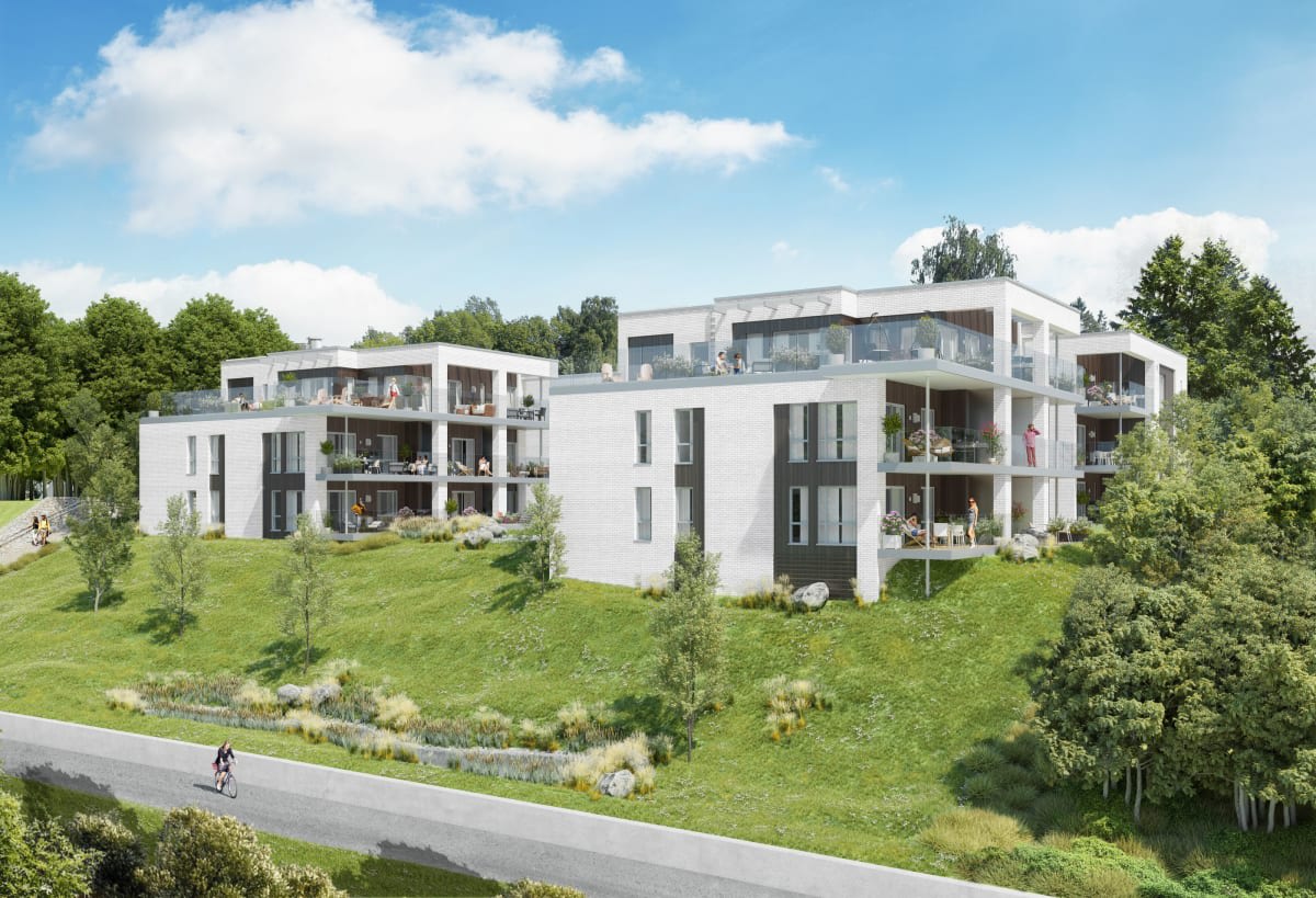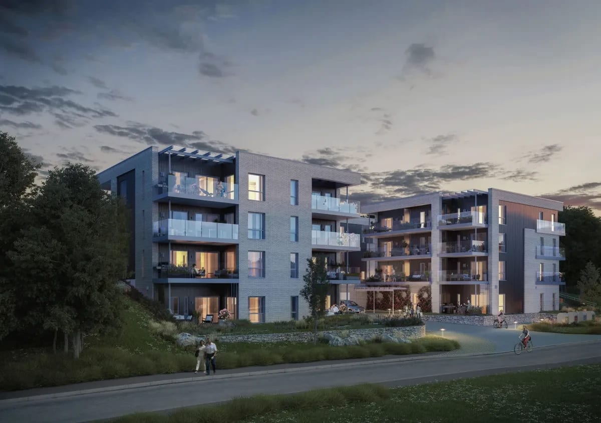 Leilighetene leveres med gode materialvalg. Romslige balkonger/terrasser og hyggelige felles uteoppholdsarealer. Parkeringsplasser i garasjekjeller med heis opp til alle etasjeplan.